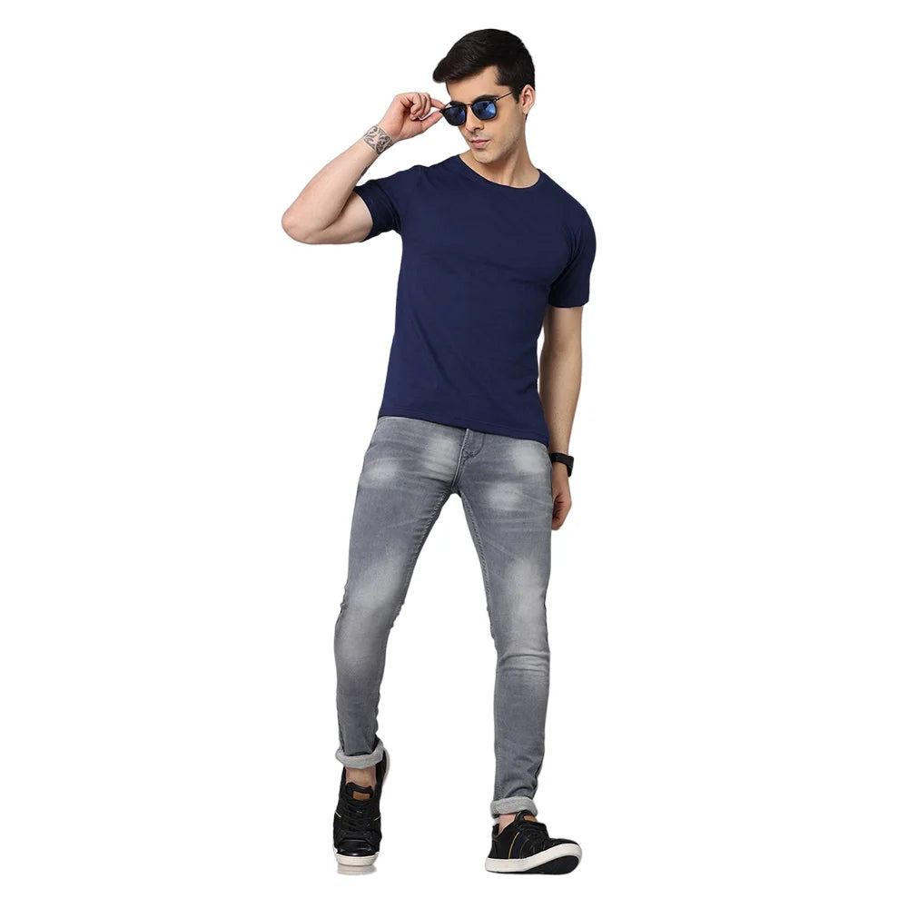 Owshitha Fashion Dillon Killen Panda Printed Round Neck Navy Blue T-shirt for Men (Pack of 5)