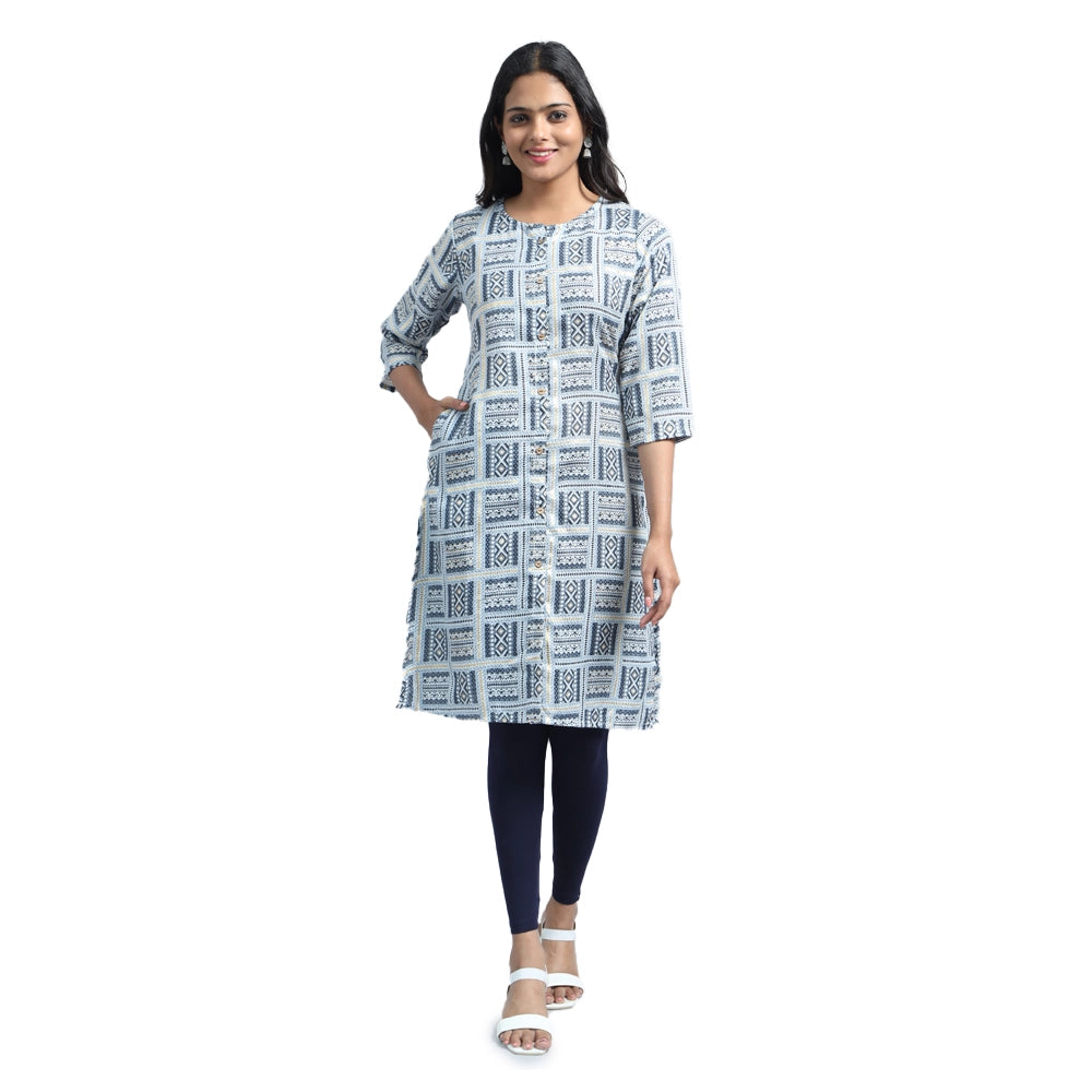 Kansie 100% Rayon Printed Kurta for Office And Daily Wear (Pack of 5)