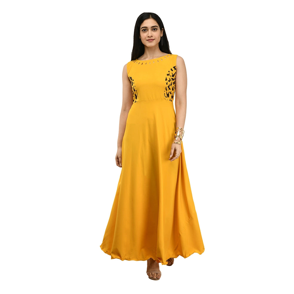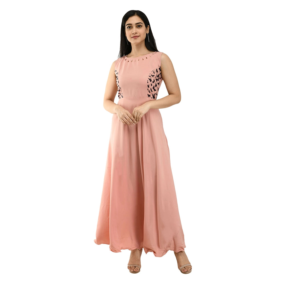 O Madam Crepe Solid Sleeveless Round Neck Maxi Casual Kurti for Women (Pack of 5)