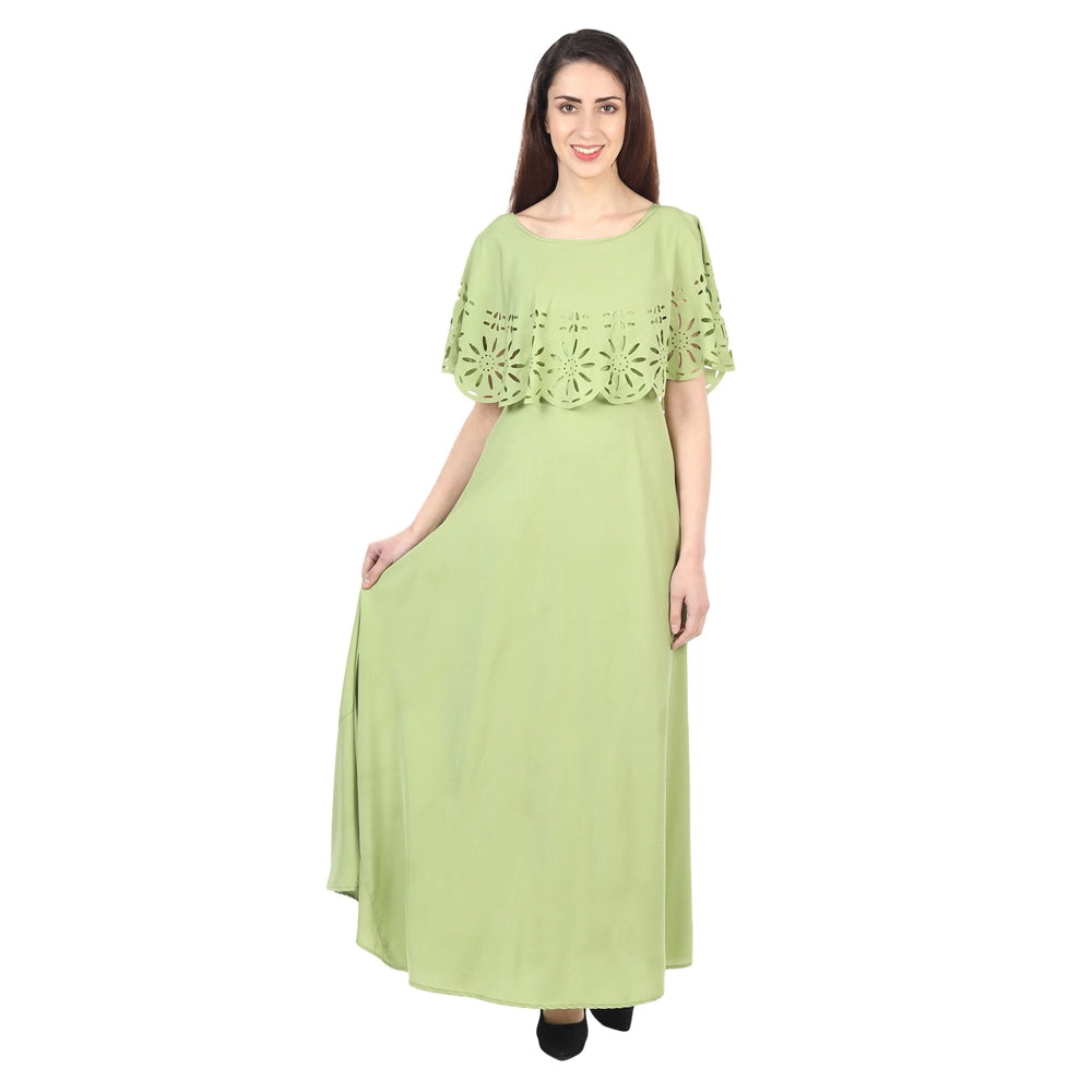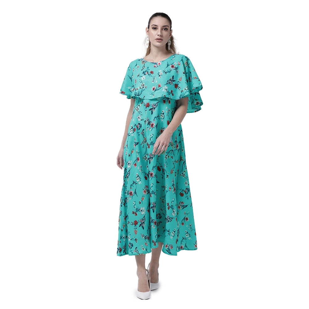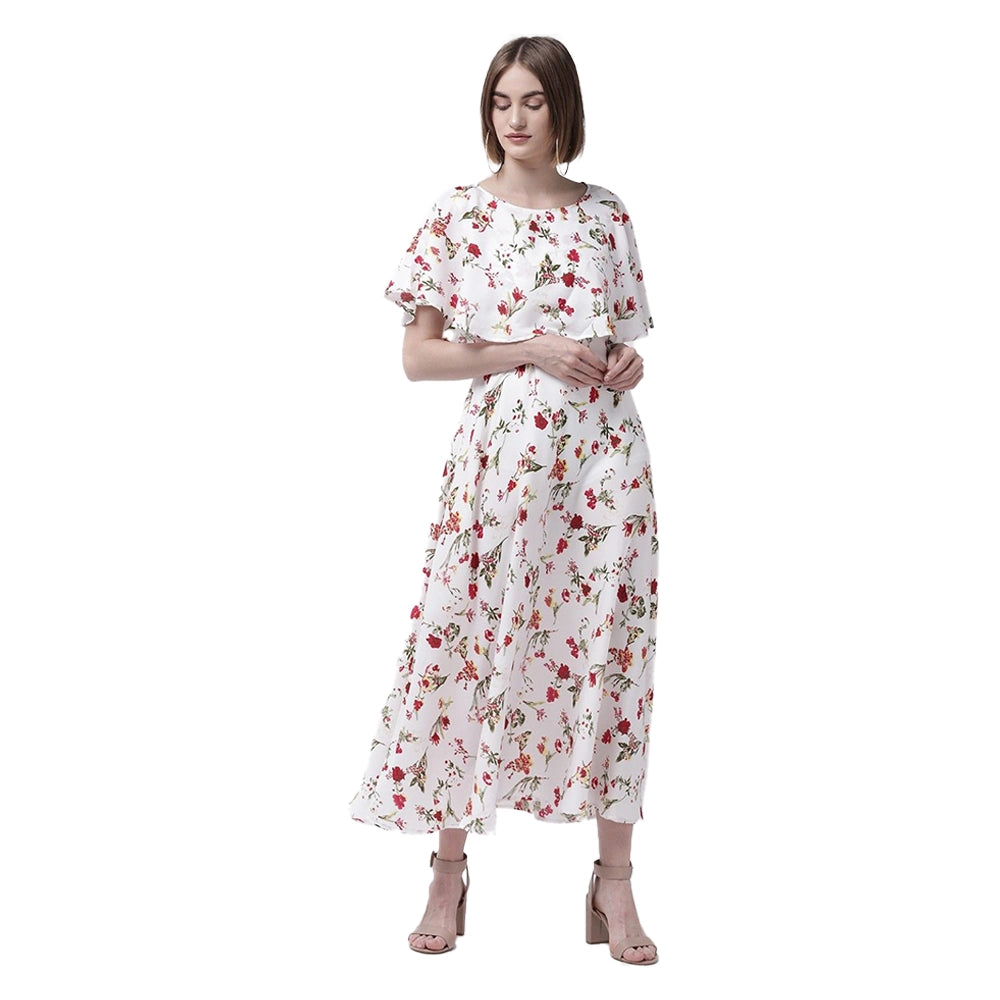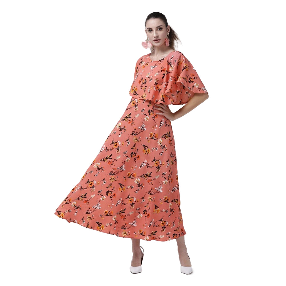 O Madam Crepe Floral Half Sleeve Maxi Round Neck Casual Kurti for Women (Pack of 5)