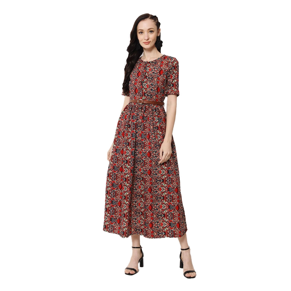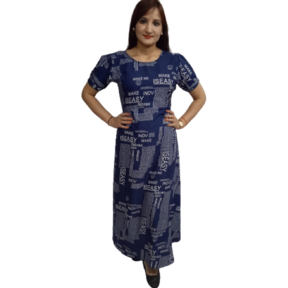 O Madam Crepe News Paper Half Sleeves Maxi Round Neck Dress for Women (Pack of 5)