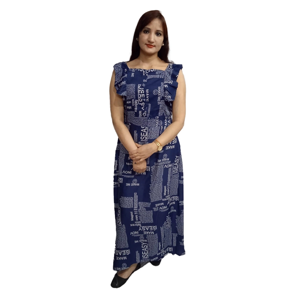 O Madam Crepe News Paper Half Sleeves Maxi Round Neck Dress For Women (Pack Of 5)