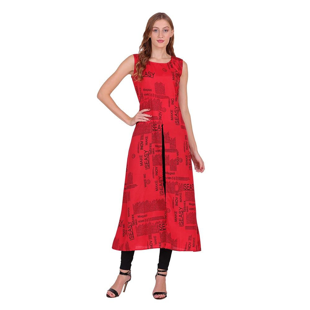 O Madam Crepe Solid Sleeveless Round Neck Maxi Casual Kurti for Women (Pack of 5)