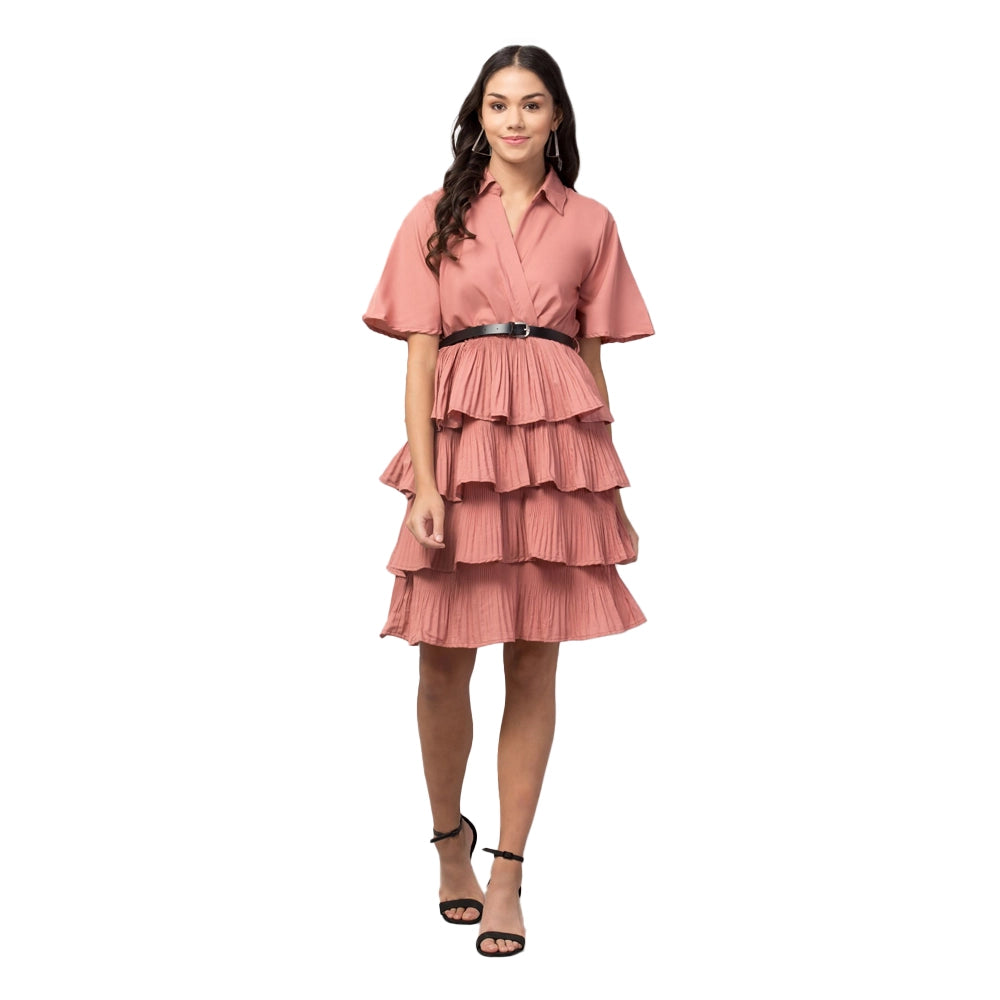 O Madam Crepe Solid Half Sleeves Loose Fit Round Neck Dress For Women (Pack Of 5)