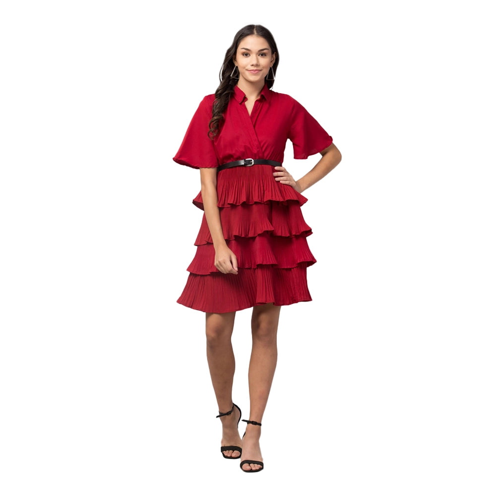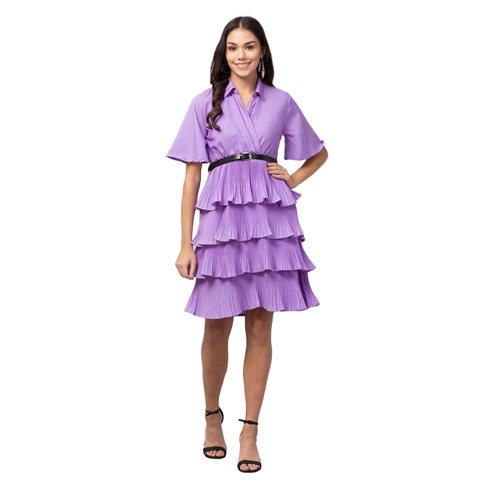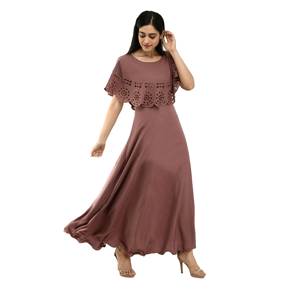 O Madam Crepe Solid Cape Sleeve Maxi Round Neck Dress For Women (Pack of 5)