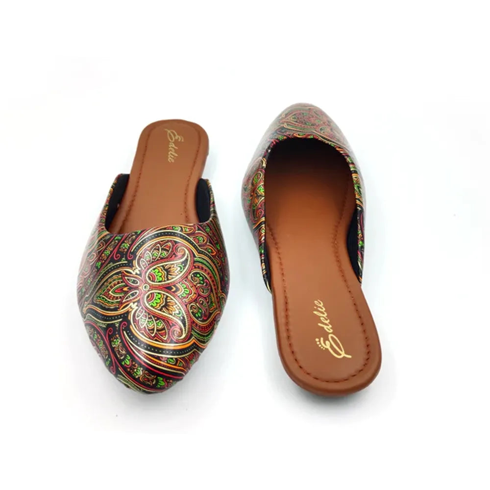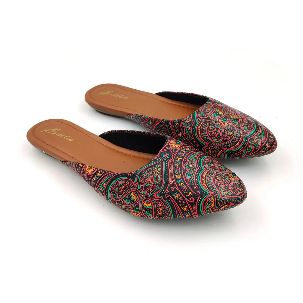 Vank Fashion Printed Flat Mules Juttis For Girls For Casual Wear